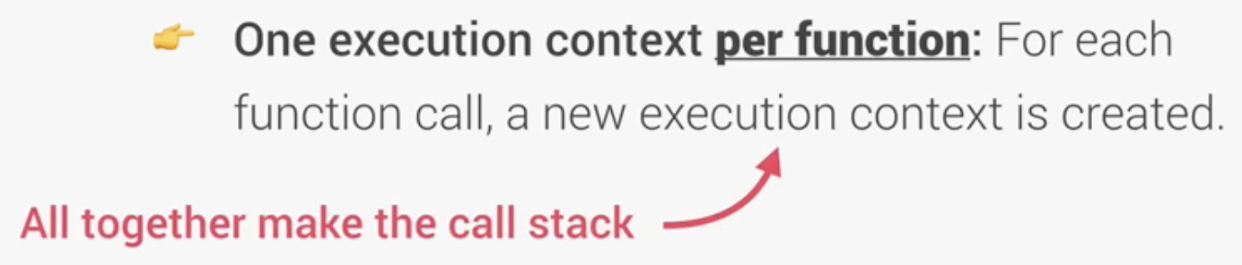Global Execution Context로 인해 상위 레벨 코드가 실행되고 그 다음 함수가 실행된다. 모든 함수가 호출될때마다 해당 함수를 실행시키기 위한 필요한 모든 정보를 포함하는 새로운 실행 컨텍스트가 생성된다. 이 과정은 객체에 있는 메소드도 동일하게 적용된다. 이러한 과정들이 모두 합쳐져 콜 스택을 구성하게 된다.