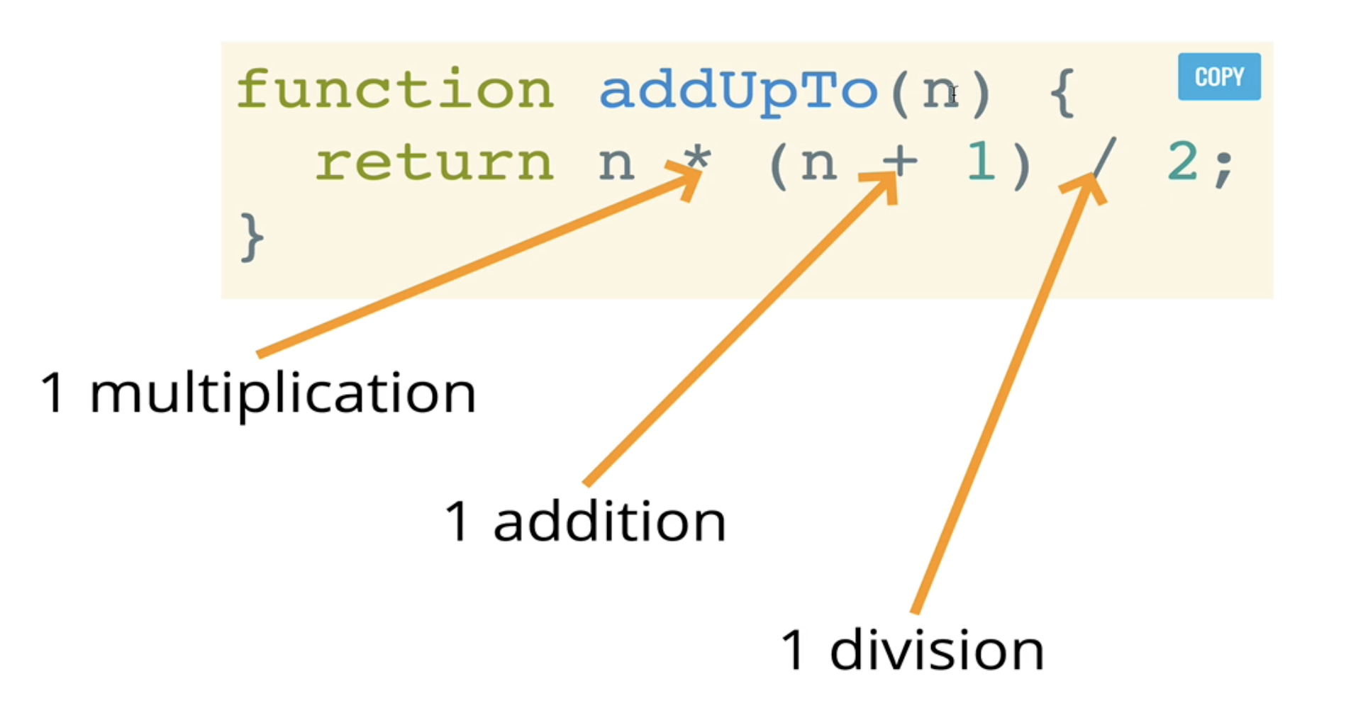 곱하기, 더하기, 나누기 총 3개의 연산이 있는 것을 알 수 있다. n이 2든 1억이든 계산은 딱 3번만 이루어 진다. 이것을 첫번째 코드를 살펴보자.