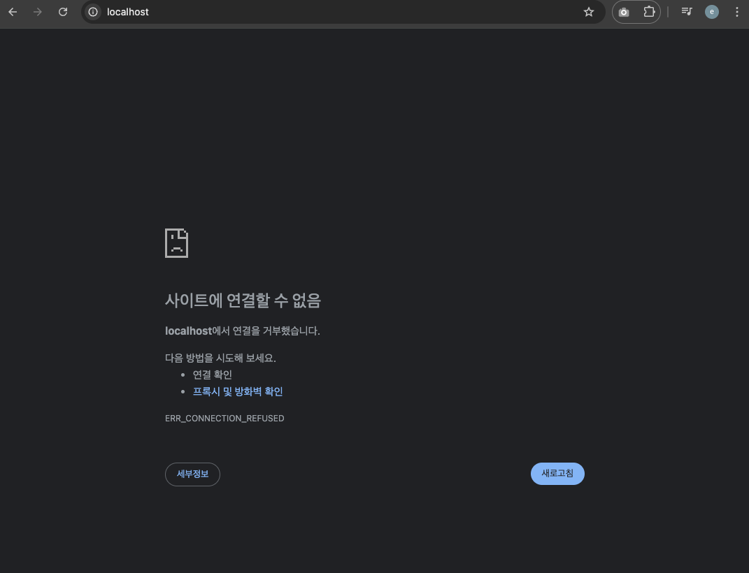 하지만 여기서 끝이 아닙니다. 이 상태에서 웹 브라우저를 열고 http://localhost:[포트]에 접속해봐도 아무것도 보이지 않습니다. 왜일까요?
