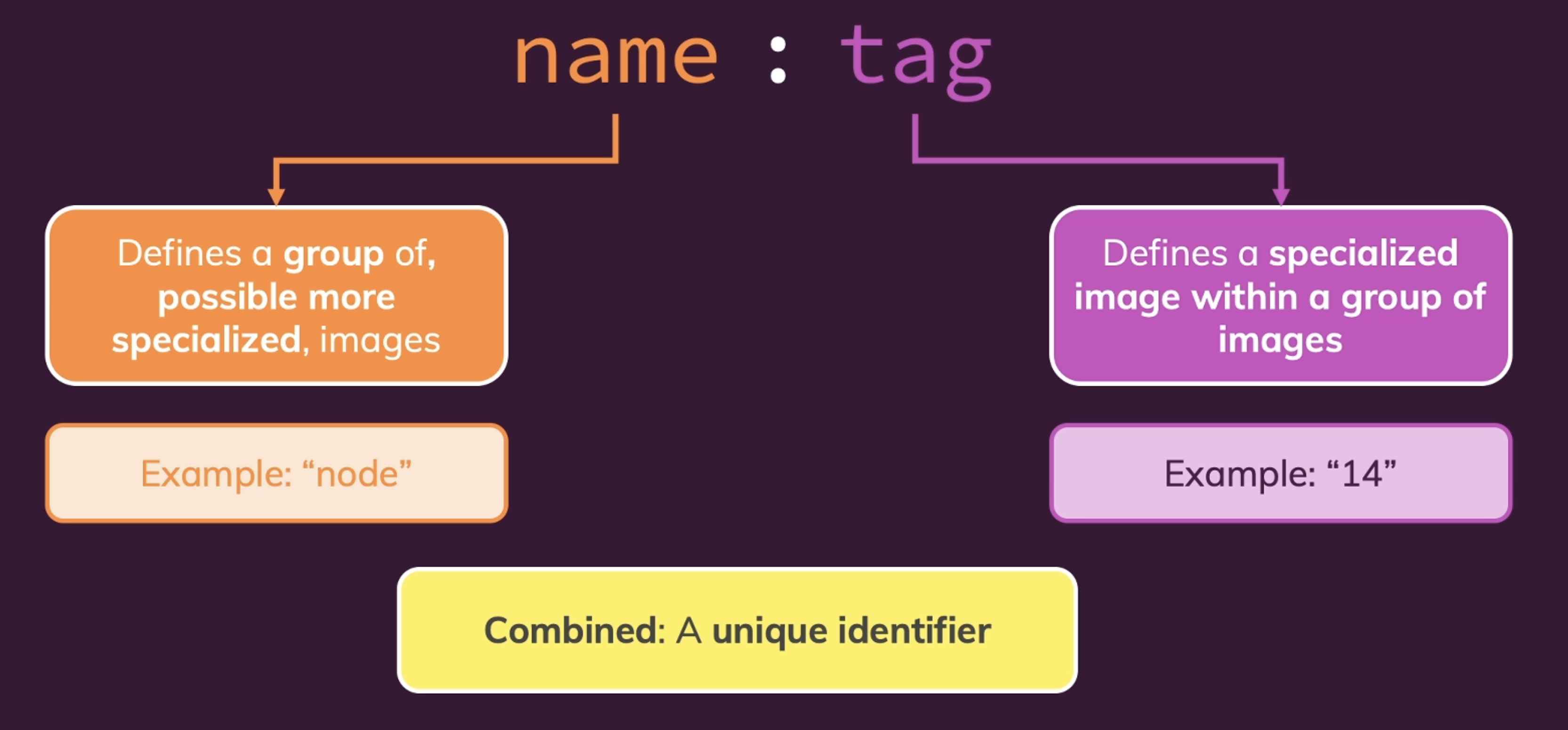 - [태그]: 특정 버전, 구성, 또는 상태를 나타냅니다. (예: 1.0, 2.1-alpine, dev, latest)